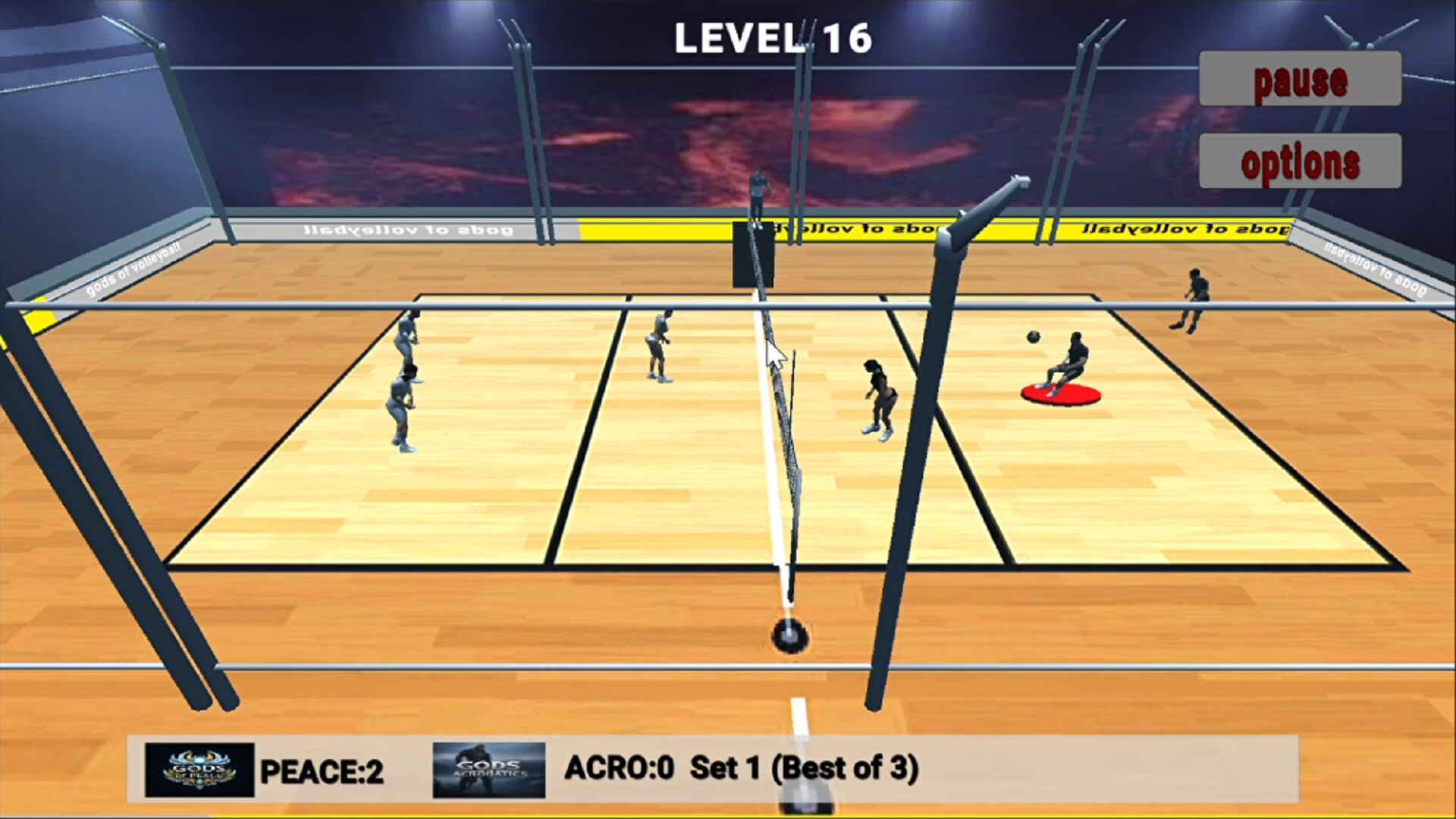 A timing-based arcade volleyball game with martial arts flair! No player positioning—just perfect execution as you serve, spike, and block through stage-based matches. One fixed team, colorful characters, and hilarious cartoon violence.