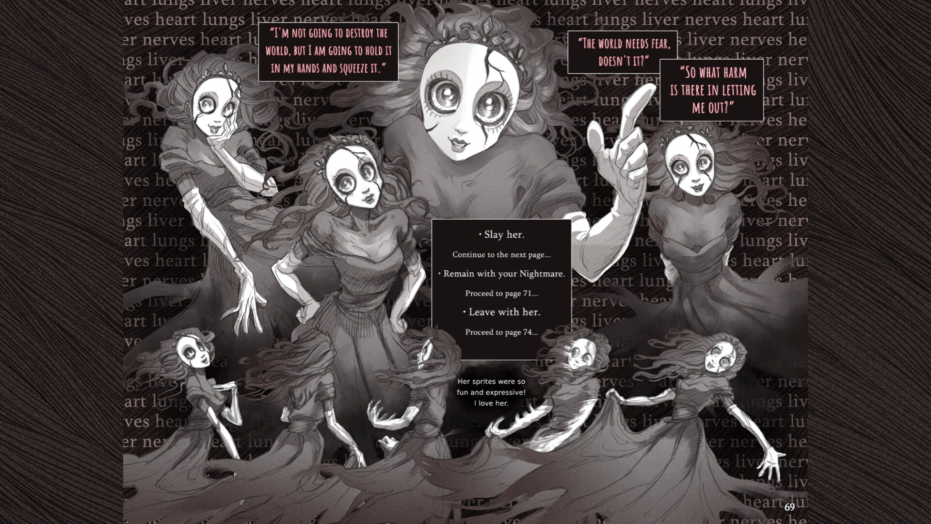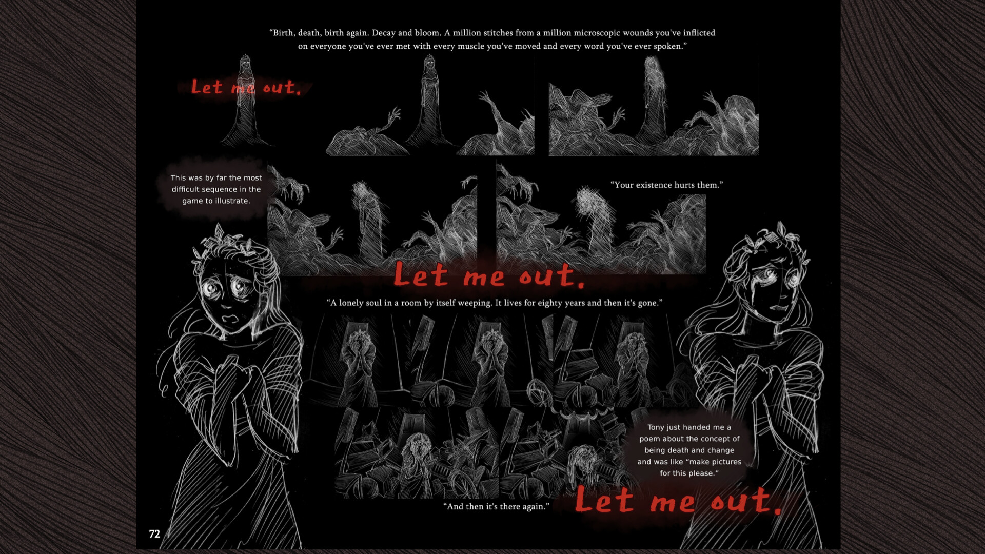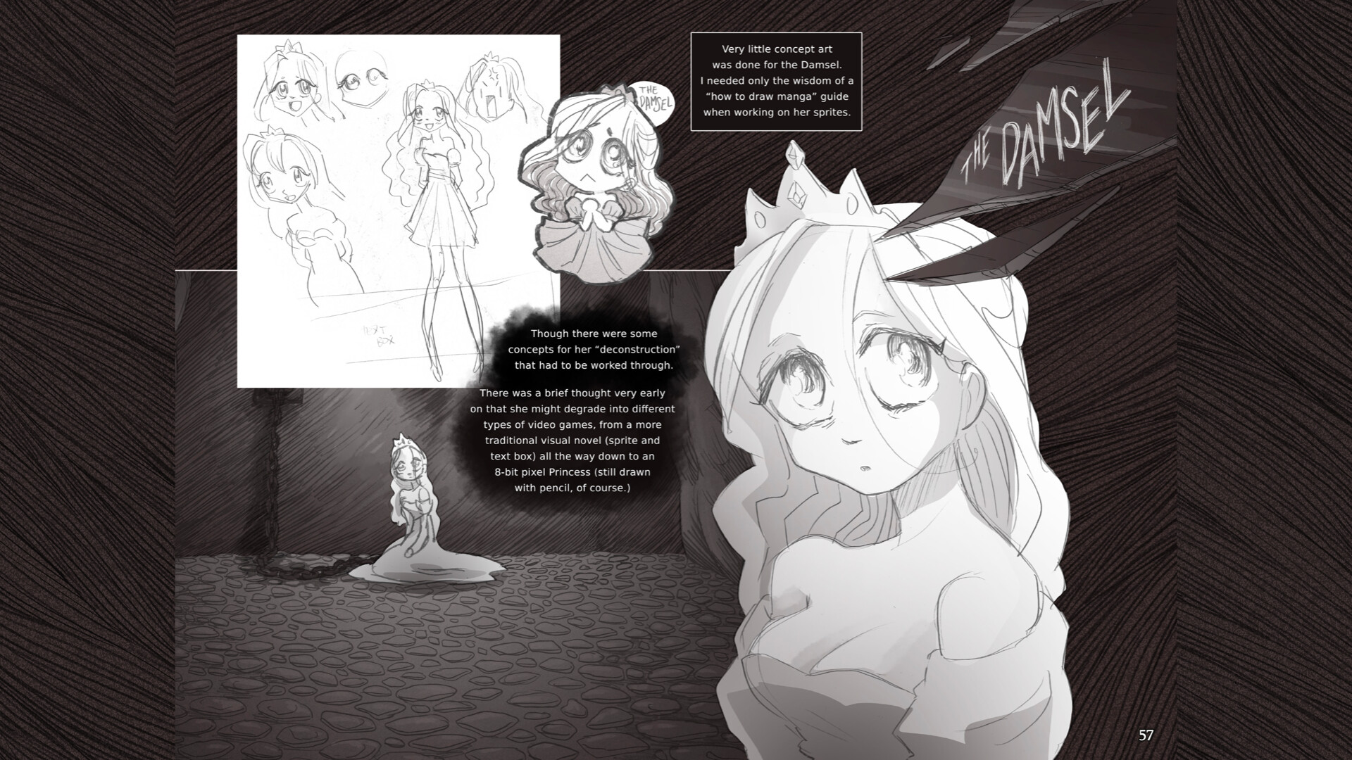 Over 290 pages of painstakingly laid out art from Slay the Princess, complete with developer commentary. Choose your path in the woods, just like in the game.